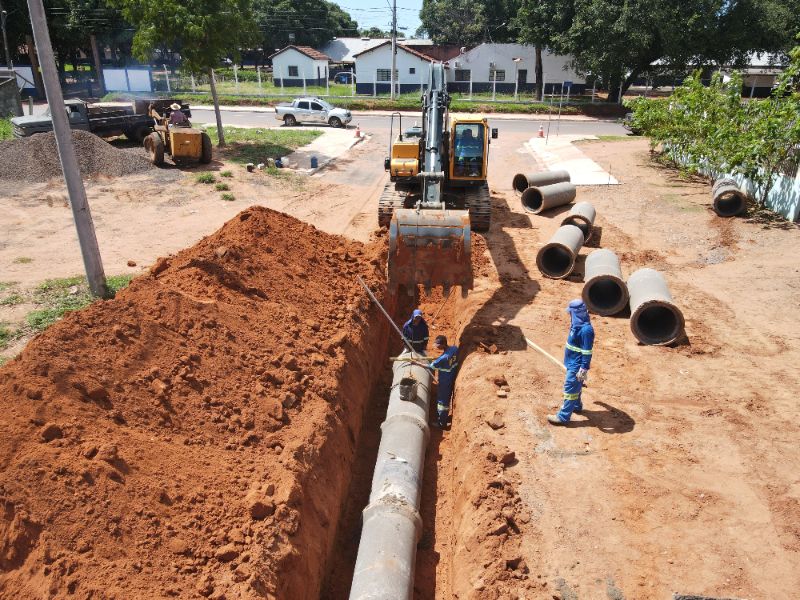 Com a estiagem desses dois dias, a Prefeitura de Aquidauana conseguiu avançar com a obra de drenagem de águas pluviais nas vilas São Pedro e Pinheiro.