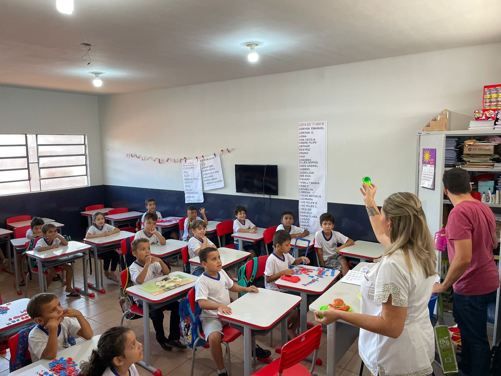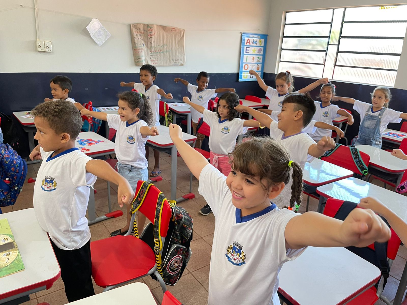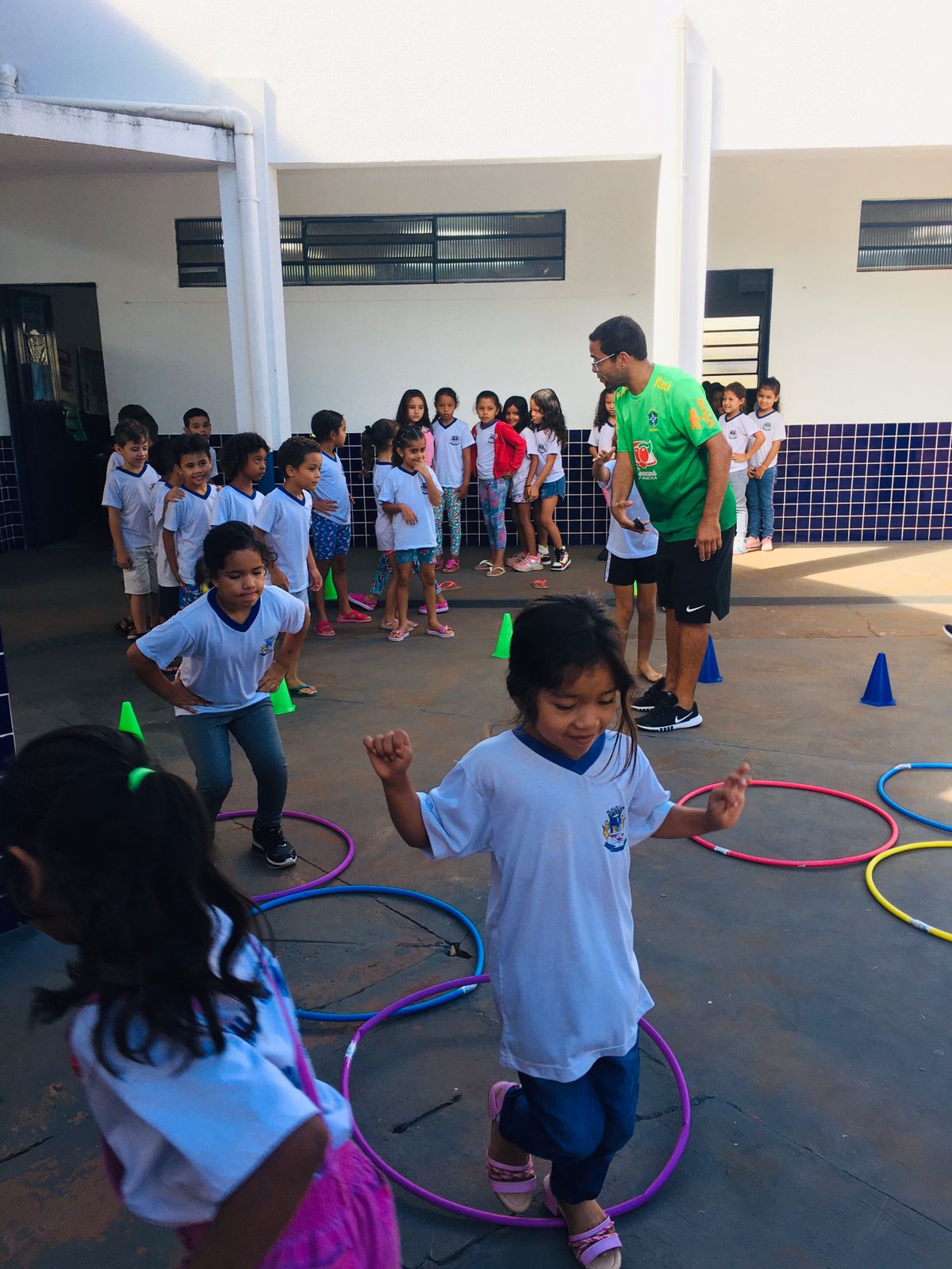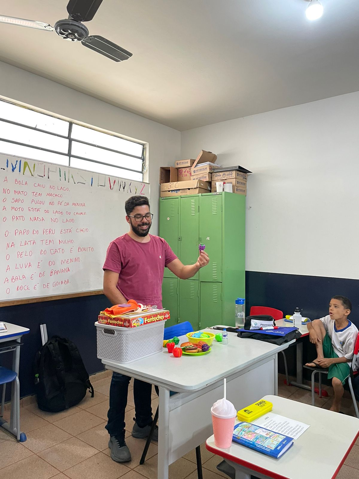 Os profissionais da ESF Nova Aquidauana, enfermeira, nutricionista, educador físico e agentes comunitários de saúde estiveram em todas as turmas trabalhando a temática da “Alimentação Saudável”. As crianças adoraram, especialmente, porque teve teatro de fantoches e dinâmicas englobando atividades físicas.