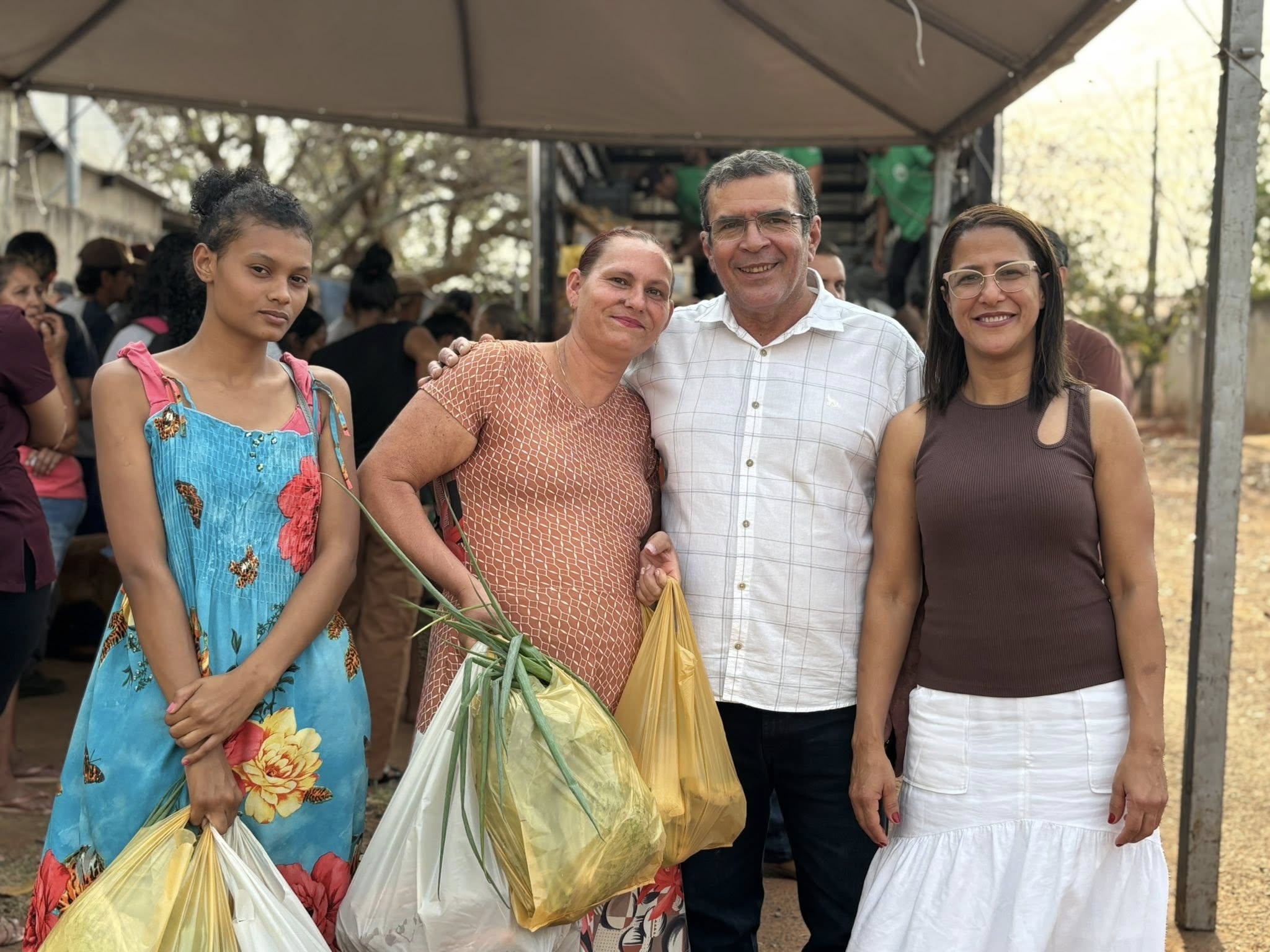 Na ocasião, foram entregues cestas compostas por itens variados e saudáveis: 1 unidade de abacaxi, 2 unidades de mamão, 2 kg de mandioca, 2 pés de alface, 1 cheiro-verde, 1 maço de couve, 1 penca de banana e 600 g de cenoura, pimentão 500 g e 1 Kg de farinha. Os alimentos entregues foram produzidos por agricultores familiares de diferentes localidades rurais, fortalecendo a economia local e valorizando o trabalho no campo.