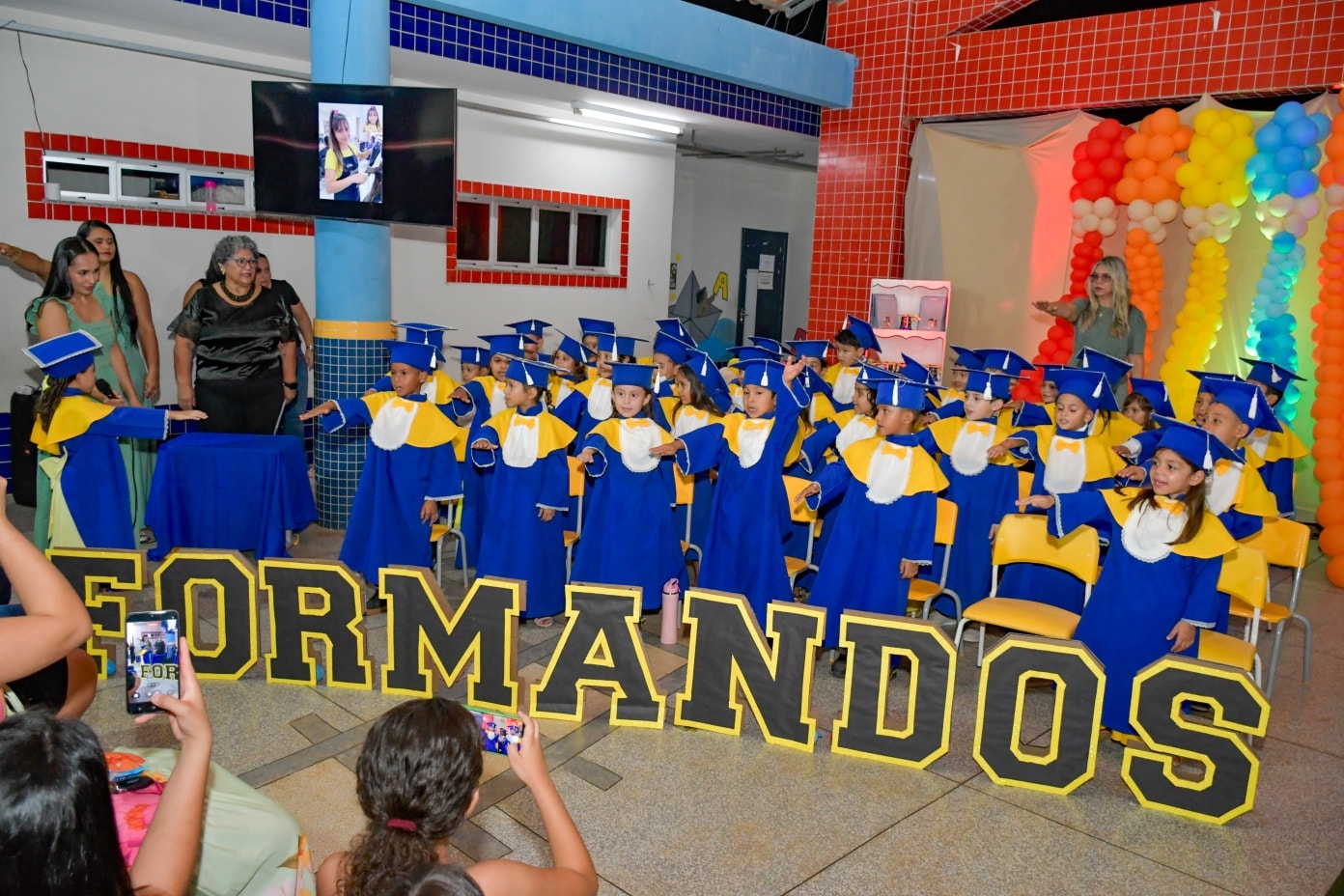 A formatura contou com a presença da direção do CMEI, professores, servidores, familiares e também da equipe da Secretaria Municipal de Educação, que acompanharam cada momento com carinho, cuidado e orgulho.