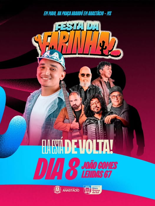Anota aí: dias 8 e 9 de maio, na Praça Arandu, com praça de alimentação, artesanatos e shows regionais e nacionais, João Gomes o cantor nordestino abre o show dia 8 junto com regional Lendas 67.
